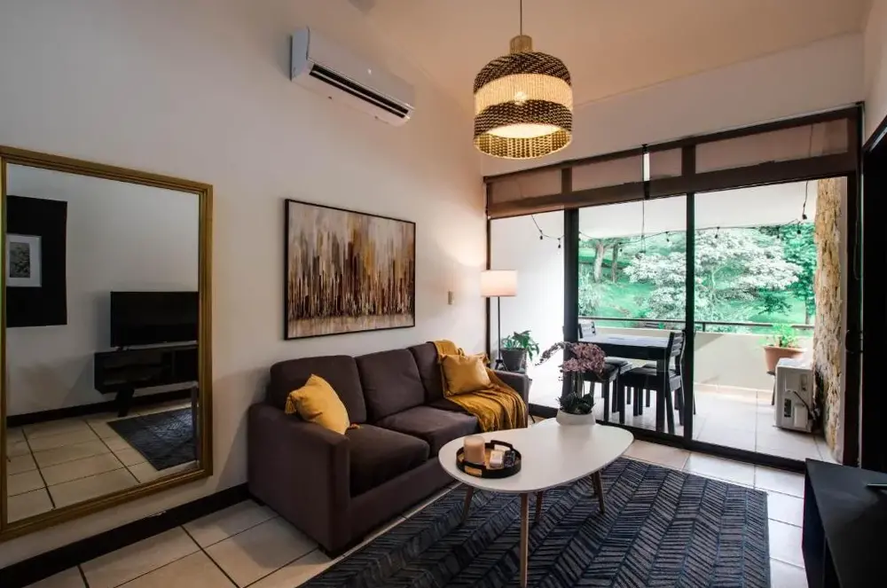 More information about CR MARIPOSA RENTALS Brand New lake view Penthouse with office spaceCR Mariposa Rentals offers a well-maintained rental unit within the secure Santa Ana Condominio Avalon Country Club complex near San José, Costa Rica. The property features two air conditioning units—one in the primary bedroom and another in the living area—to ensure consistent comfort throughout the space.